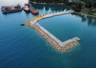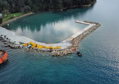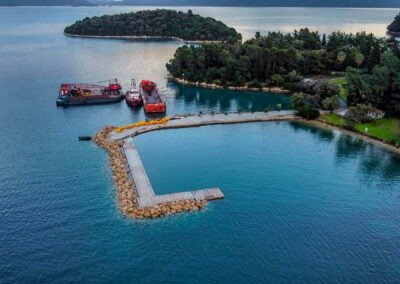 Ένα εξαιρετικά απαιτητικό έργο θαλάσσιων υποδομών στο θρυλικό νησί Σκορπιός, που περιλαμβάνει την κατασκευή νέων μαρίνων στην περιοχή της Παναγίτσας. Οι εργασίες περιελάμβαναν την κατασκευή μιας προβλήτας 100 μέτρων με εξωτερική θωράκιση, καθώς και την εγκατάσταση ενός νέου αγωγού ύδρευσης. Αυτή η ανάπτυξη αποτελεί βασικό μέρος της σημαντικής μετατροπής του νησιού από τον Ρώσο επενδυτή Ντμίτρι Ριμπολόβλεφ σε ένα πολυτελές θέρετρο παγκόσμιας κλάσης, ενισχύοντας τόσο τη λειτουργικότητα όσο και το κύρος.